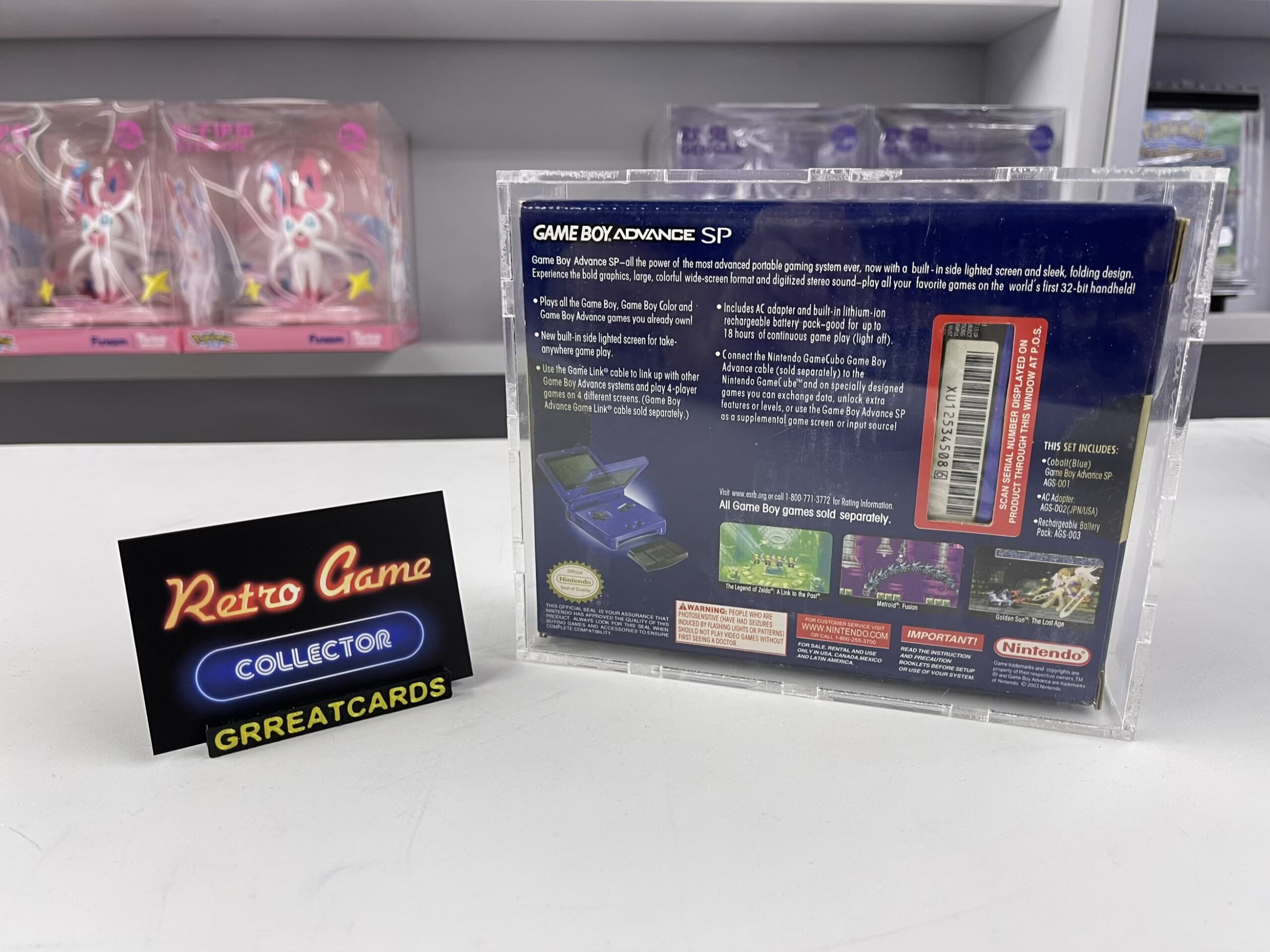 GBA Nintendo GameBoy Advance SP Cobalt Blue Nintendo AGS-001 SEALED Complete in Box USA Incl Display Case BRAND NEW